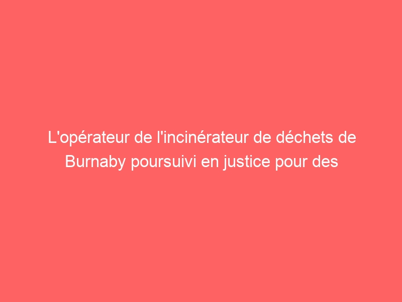 Le Greater Vancouver Sewerage and Drainage District poursuit Maxxam Analytics International Corp.et Covanta Burnaby Renewable Energy ULC pour avoir prétendument omis de tester correctement les échantillons de cendres volantes de l’installation de valorisation énergétique du district à Burnaby. Le district a déposé un avis de poursuite civile devant la Cour suprême de la Colombie-Britannique le…