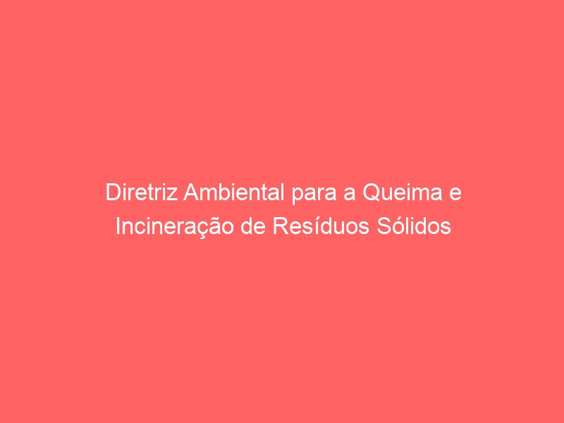 Diretriz Ambiental para a Queima e Incineração de Resíduos Sólidos