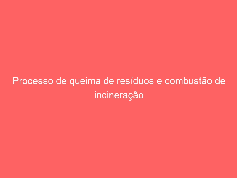 A combustão ou queima de resíduos sólidos passa por uma série de etapas. A água é primeiro retirada dos resíduos não queimados pelo calor produzido pelo material queimando nas proximidades ou por um queimador auxiliar. À medida que os resíduos aquecem, o carbono e outras substâncias são liberados e convertidos em gases queimáveis. Isso é conhecido como gaseificação. Esses gases são então capazes de se misturar com o oxigênio. Se a temperatura dentro da câmara de queima for alta o suficiente e mantida por um longo período de tempo, os gases quentes são completamente convertidos em vapor d’água e dióxido de carbono, que é então liberado no ar. Se a temperatura dentro da câmara de queima não for alta o suficiente e o tempo de queima for muito curto, a conversão completa dos gases incineráveis não ocorre e fumaça visível é liberada no ar. Outro resultado da queima em baixas temperaturas é a geração de poluentes que não estavam originalmente presentes nos resíduos. Este processo é conhecido como síntese de novo. Dioxinas, furanos e outros poluentes químicos complexos podem ser formados por meio desse processo.