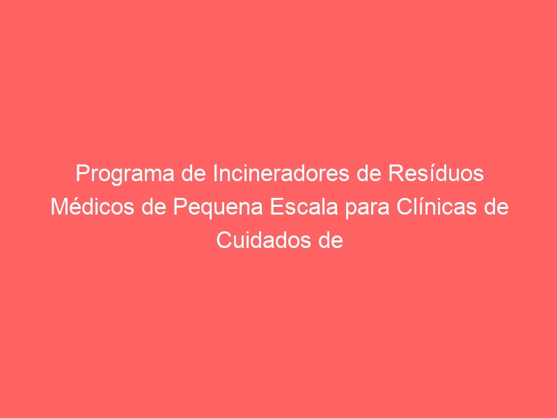 O objetivo do programa é selecionar critérios técnicos adequados para fins de especificação de concurso que permitirão ao Departamento de Saúde da África do Sul obter os serviços e equipamentos necessários para as clínicas de atenção primária de saúde realizarem a incineração em pequena escala para a eliminação de resíduos hospitalares .